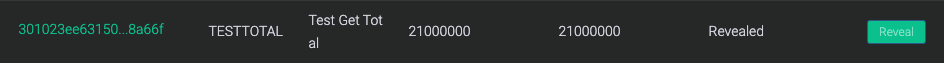5. If the deployer wants to get all total supply tokens at once, he can make the mint amount equal to the total supply. The following example shows how to create a token called "TESTTOTAL" and get its total supply immediately.